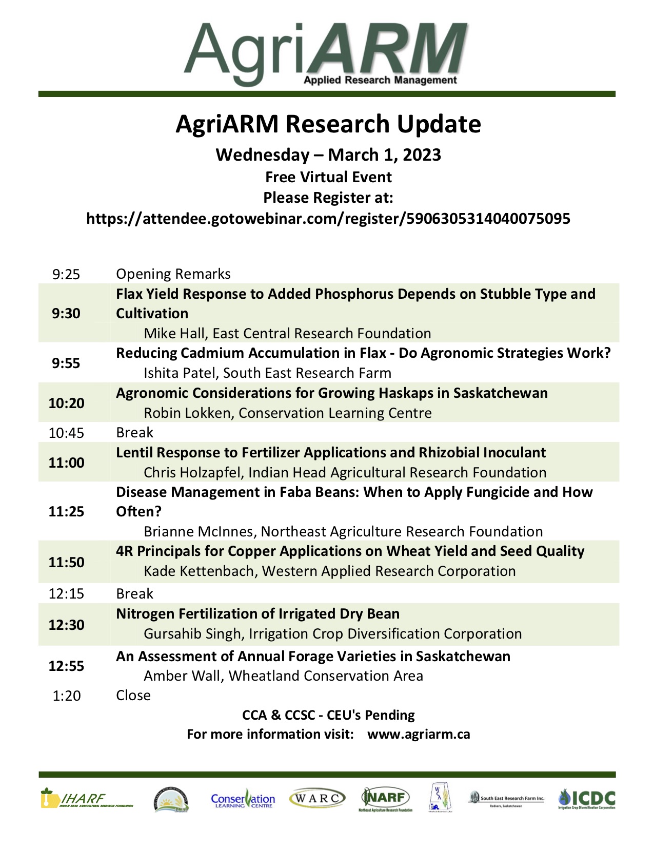 Our events section has been updated. On behalf of us, Pioneer Coop Grow Team and the SK Ministry of Agriculture, please join us for Cropportunities 2023 at the Living Sky Casino on March 14th. Register by calling 306-778-8285. As well as register for out online Annual AgriARM Update on March 1st to learn about current research taking place around the province. https://attendee.gotowebinar.com/register/5906305314040075095