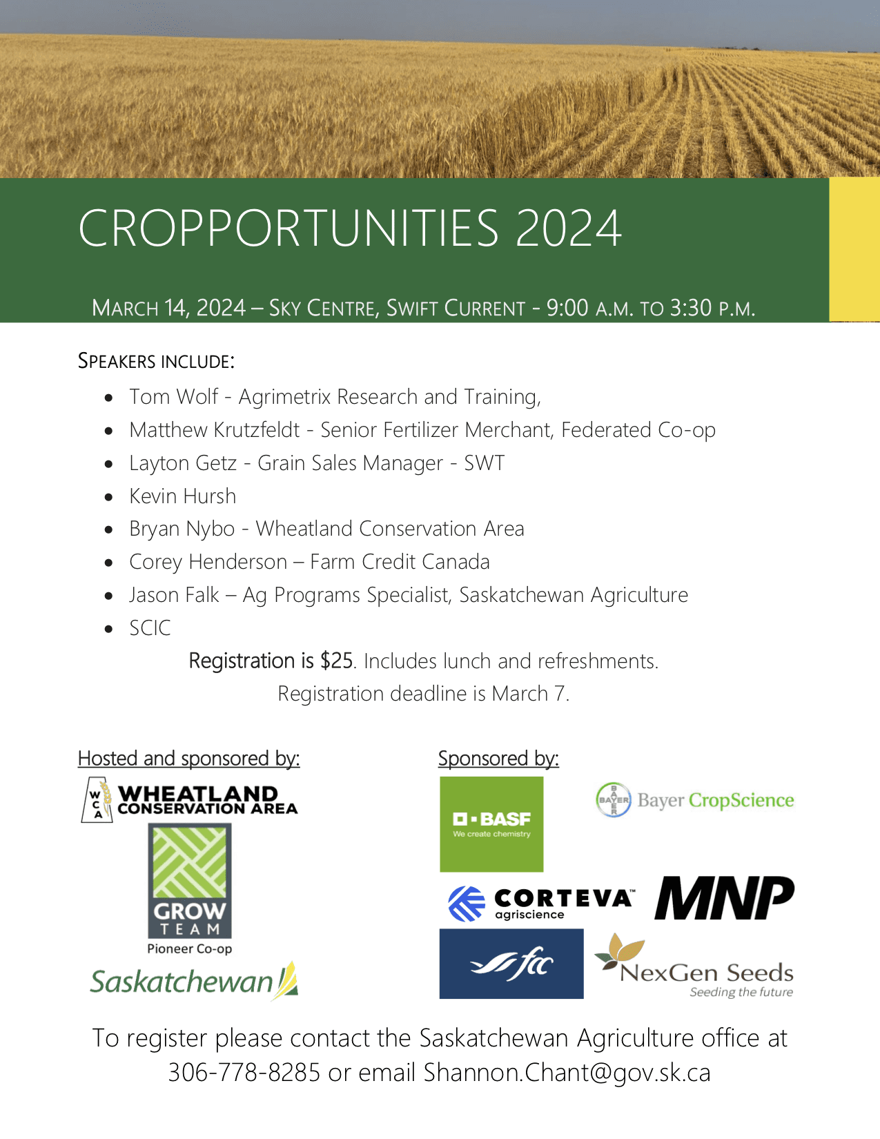 Registration is open for our Annual Cropportunities Conference, hosted with The Saskatchewan Ministry of Agriculture and the Pioneer Coop Grow Team in Swift Current.
